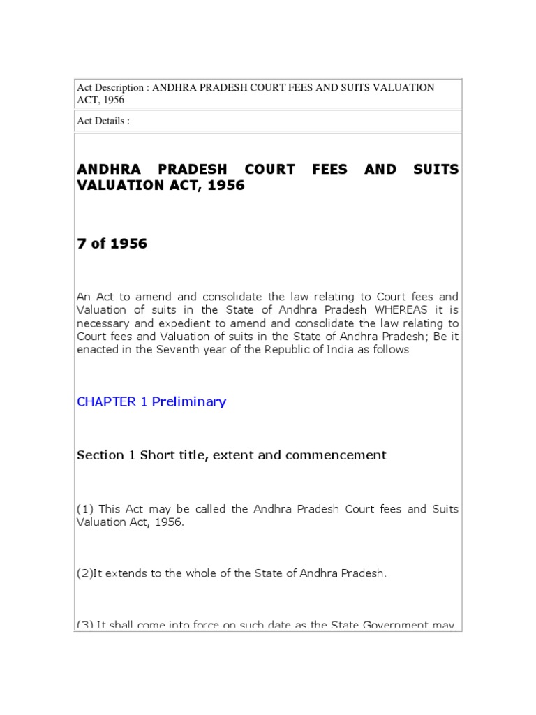 Andhra Pradesh Court Fees And Suits Valuation Act 1956 Probate Mortgage Law
